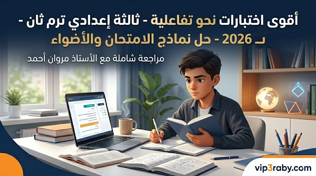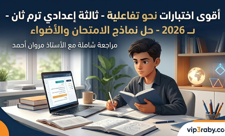 أبنائي وبناتي طلاب الصف الثالث الإعدادي، يسعدنا عبر موقعنا vip3raby.com أن نقدم لكم وجبة لغوية دسمة، تشمل مراجعة نهائية شاملة على كافة دروس النحو المقررة في الفصل الدراسي الثاني. وبناءً على معايير الأمانة العلمية، فقد قمنا بإعداد هذه الاختبارات التفاعلية اعتماداً على نماذج امتحانات كتاب الامتحان (بنتظام اختر)، لضمان تدريبكم على أحدث أنماط الأسئلة الوزارية التي تضمن لكم التفوق والتميز في ماراثون الشهادة الإعدادية.